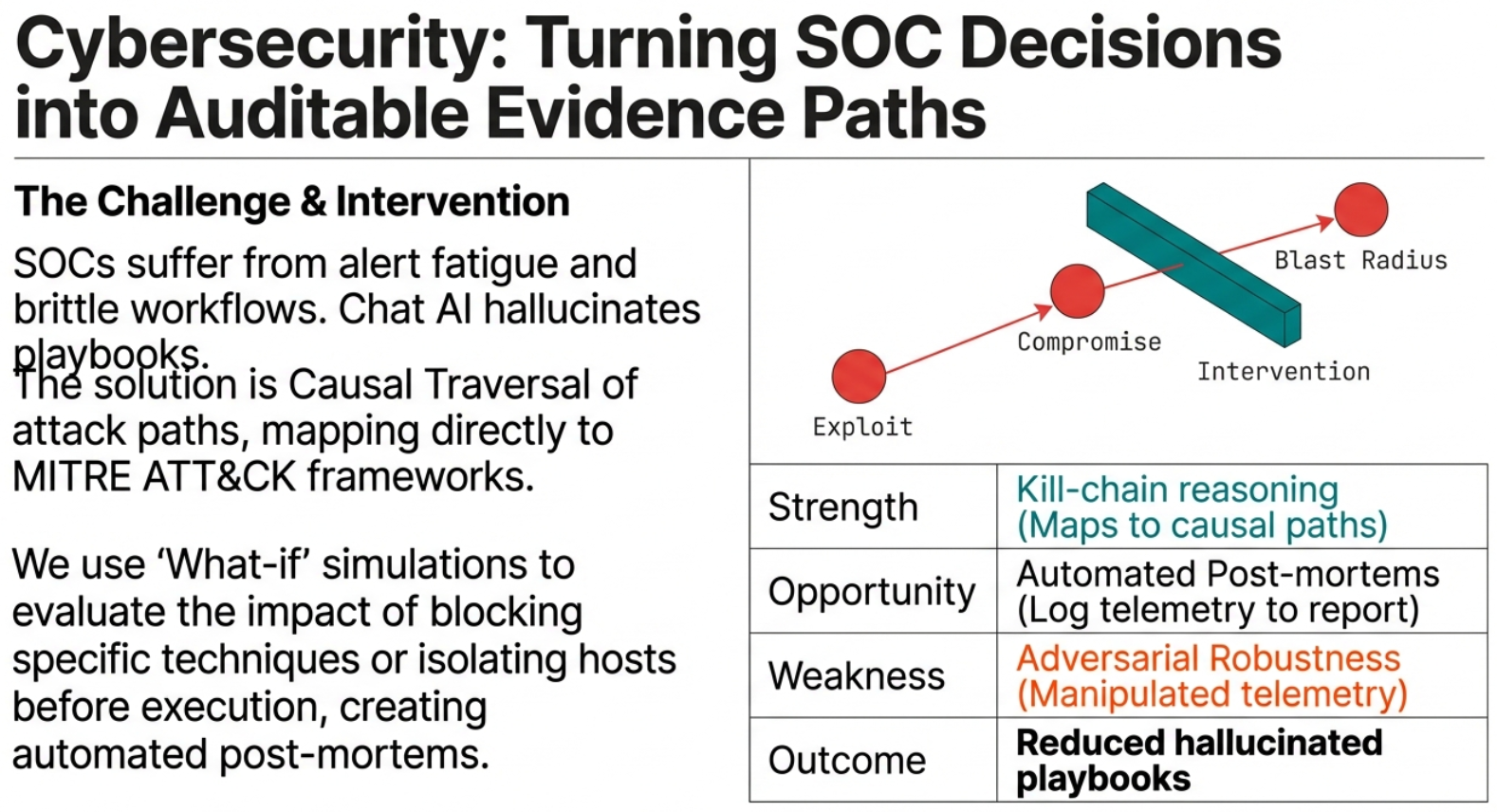 Security operations combine messy telemetry, fast timelines, and strict playbooks. The system must connect evidence into defensible chains β and enforce what actions are allowed.